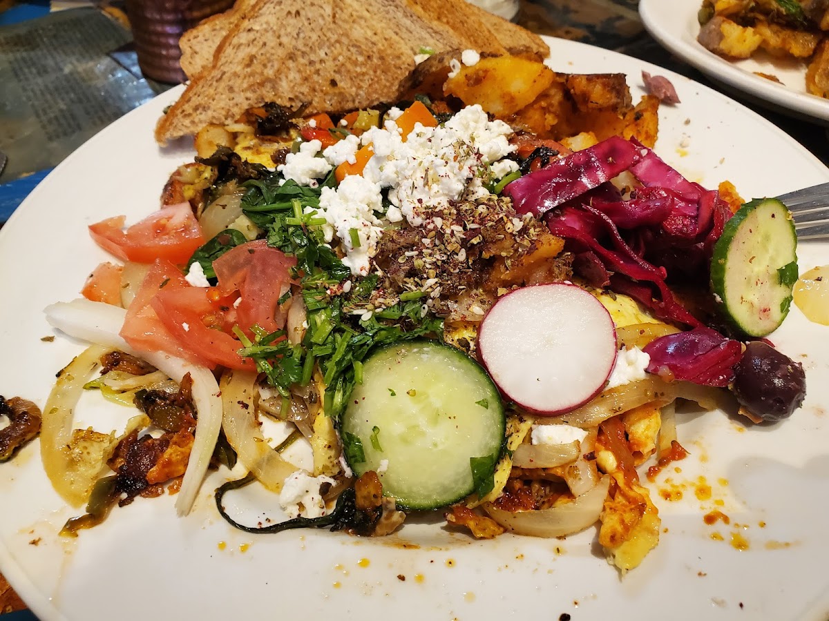 The menu is a testament to creativity, featuring standout dishes that you won't want to miss. The Baklava Pancakes, a signature offering, are a crowd favorite—fluffy, buttery stacks adorned with walnuts and a gentle drizzle of rosewater syrup that dances on your taste buds. This dish is not just food; it's an experience that artfully bridges Middle Eastern delight with classic breakfast charm. Be prepared for a sweet surprise, as some guests have noted they can be quite indulgent. If you're craving something savory, the variety of Benedicts and Sandwiches like the 35 (Egg, cheese, bacon, and veggies) are sure to tantalize your palate. Each dish is prepared with care, making it difficult to settle on just one favorite!